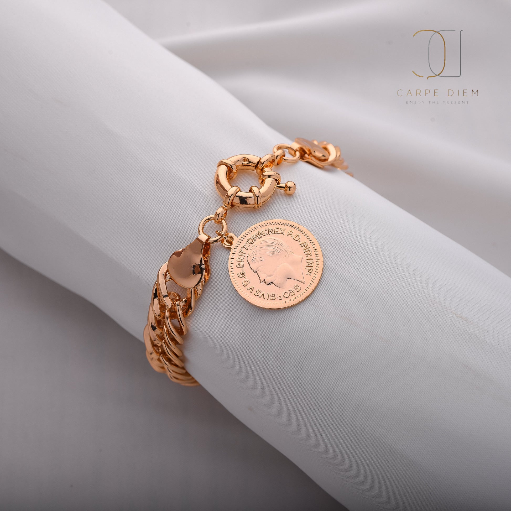 Description: A golden coin bracelet