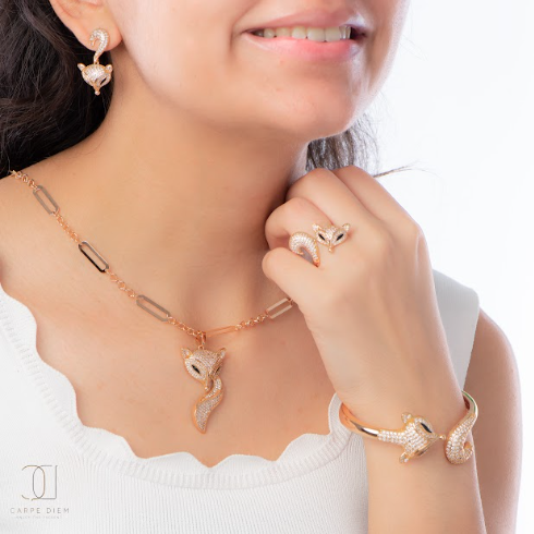 Description: A wolf set contains necklace, bracelet, earrings and ring