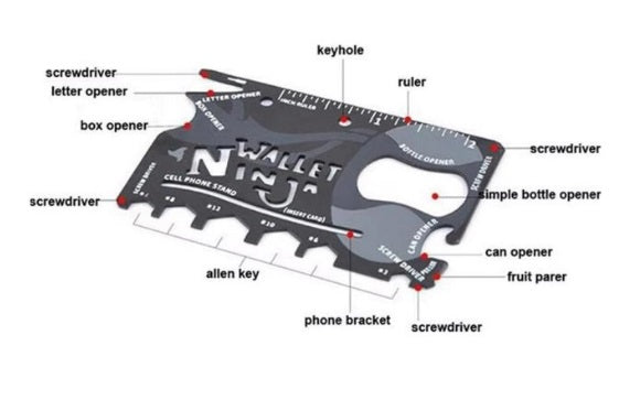 The Wallet Ninja is an 18-in-1 multi-purpose credit card sized pocket tool